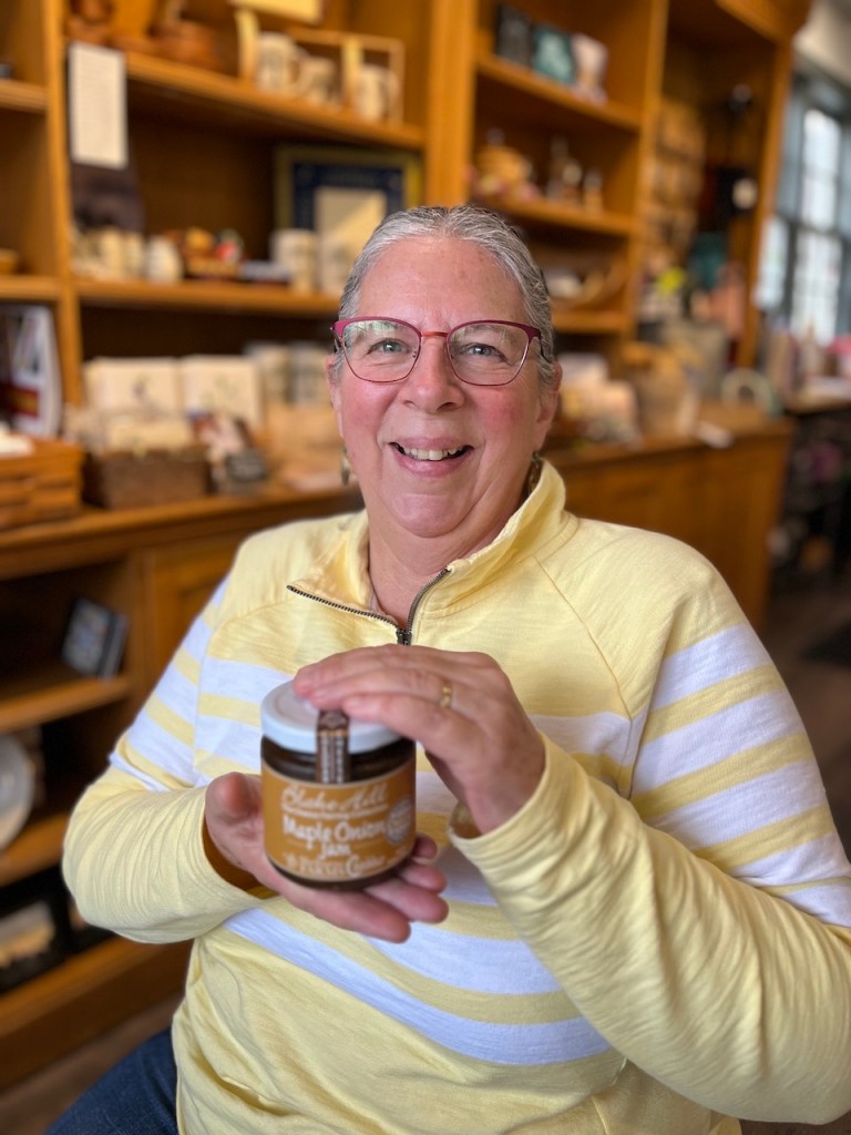 Smear one jar of the Blake Hills Maple Onion jam over both sides of 6 large boneless chicken thighs. Bake at 350′ for 25-30 minutes. You are left with a savory-sweet au jus to spoon over the thighs and any rice or pasta that you serve with it. Gotta try this one!