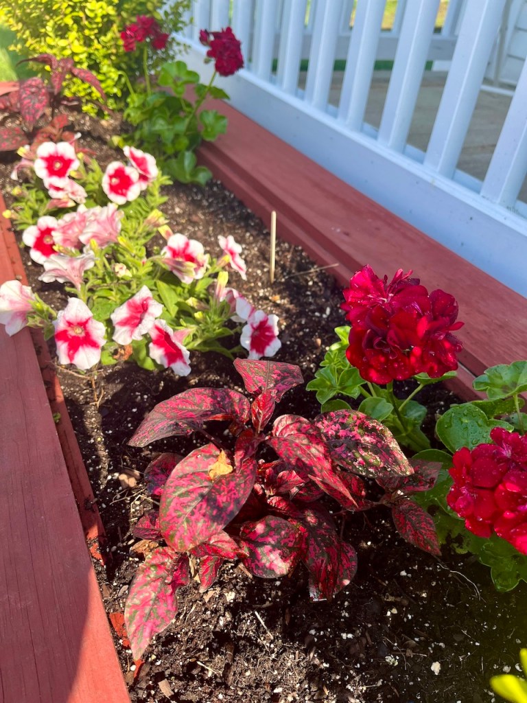 It feels like summer doesn’t it? The heat wave we are having plus the bunting on the gazebo and on our store…red, white and blue. The grammar school will be in the gazebo today Friday doing a Memorial Day presentation and on Monday our annual tribute to those who have served also in the gazebo. And in the store, raspberry red, white chocolate and blueberry blue baked treats to celebrate.