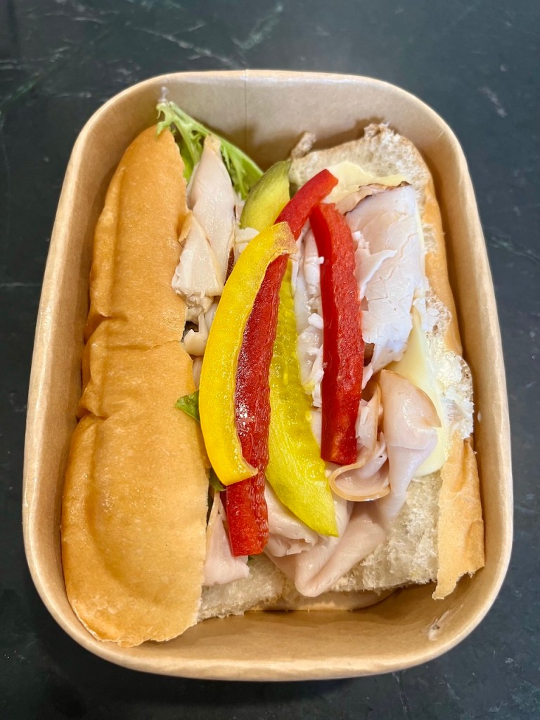 Vegetable choice of mushrooms, green peppers, onions and pepperoncini on red sauce