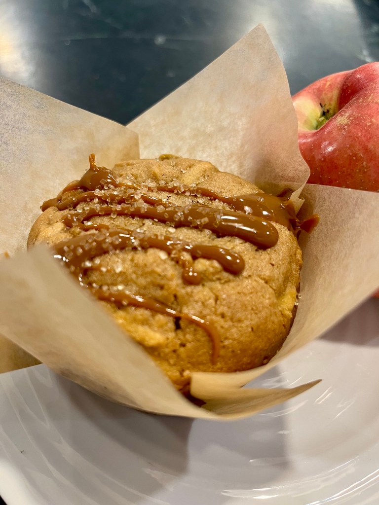 Beat only until blended – do not over beat or the muffins will be tough. Work quickly at this point because the cider is reacting with the baking soda and powder to give the muffins lift. Scoop batter into greased or paper-lined muffins pan until 2/3 full. Bake 350º for 13-16 minutes until a toothpick inserted comes out clean.
