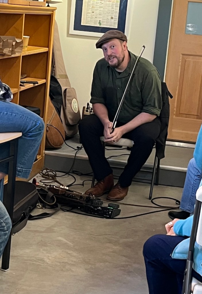 But inside this last week-end we all were enraptured with Jordon Tirrell-Wysocki’s moving renditions of Celtic music on his fiddle and mandolin. Tears were seen and many people came out just for him including a couple from Austin, Texas. Dudley came to see his student and when he was escorted to a seat of honor, the Texas couple said, “Is this a Hallmark movie?! The town, the people, its incredible…we keep looking for the cameras”. See some of his music on our Facebook page and we sell his CDs for him.