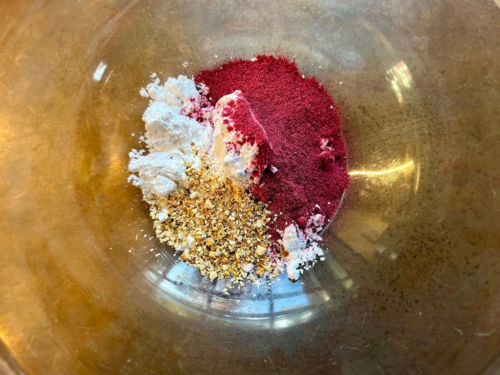 Preheat the oven at 450′ for one hour. Meanwhile, mix one packet of the cranberry dip mix with 1T water, 1T olive oil, 1 tsp kosher salt and 1/4 tsp ground black pepper.