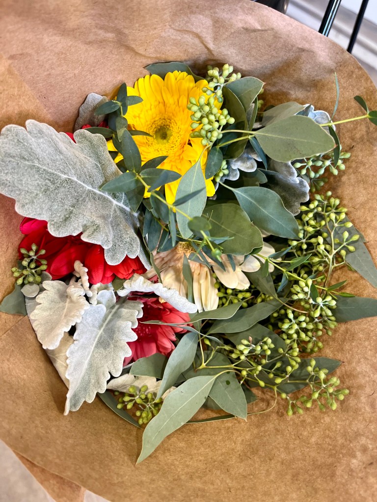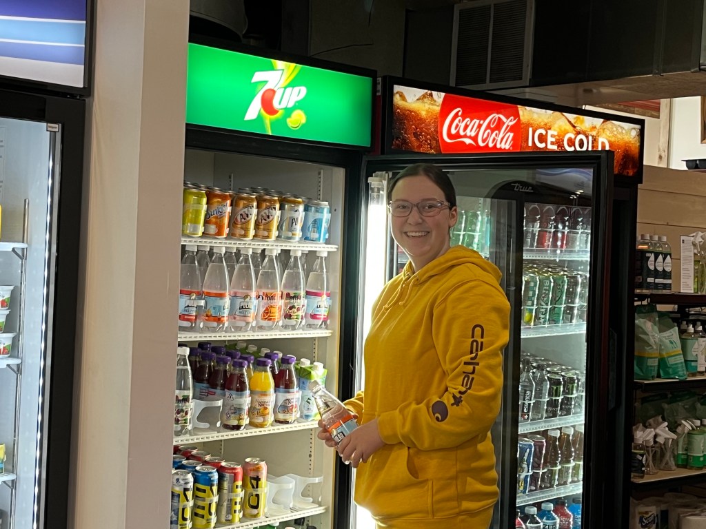 Take one to two rinsed sage leaves [we have them free of charge in our cooler if you need some] and crush them by twisting the leaf back and forth; place in the bottom of a glass. Add 1/2oz (1T) elderflower syrup into the glass, add 1oz vodka if desired, add 4oz club soda and stir gently. Fill the glass with ice. This is very refreshing!