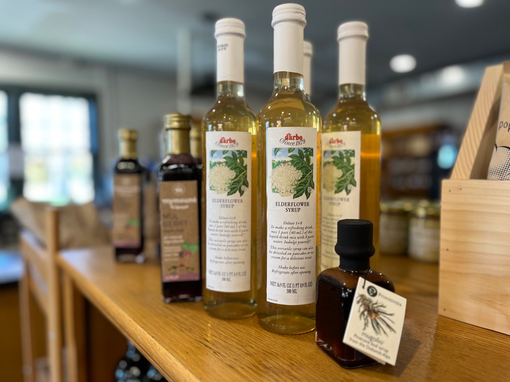 We love cocktails this time of year so we have fun playing with flavors. And not always do our cocktails contain alcohol. We have always been a fan of St. Germain Elderflower liqueur but it does contain alcohol. The store carries an alcohol-free Elderflower syrup so you can get the same taste with or without alcohol in a cocktail.