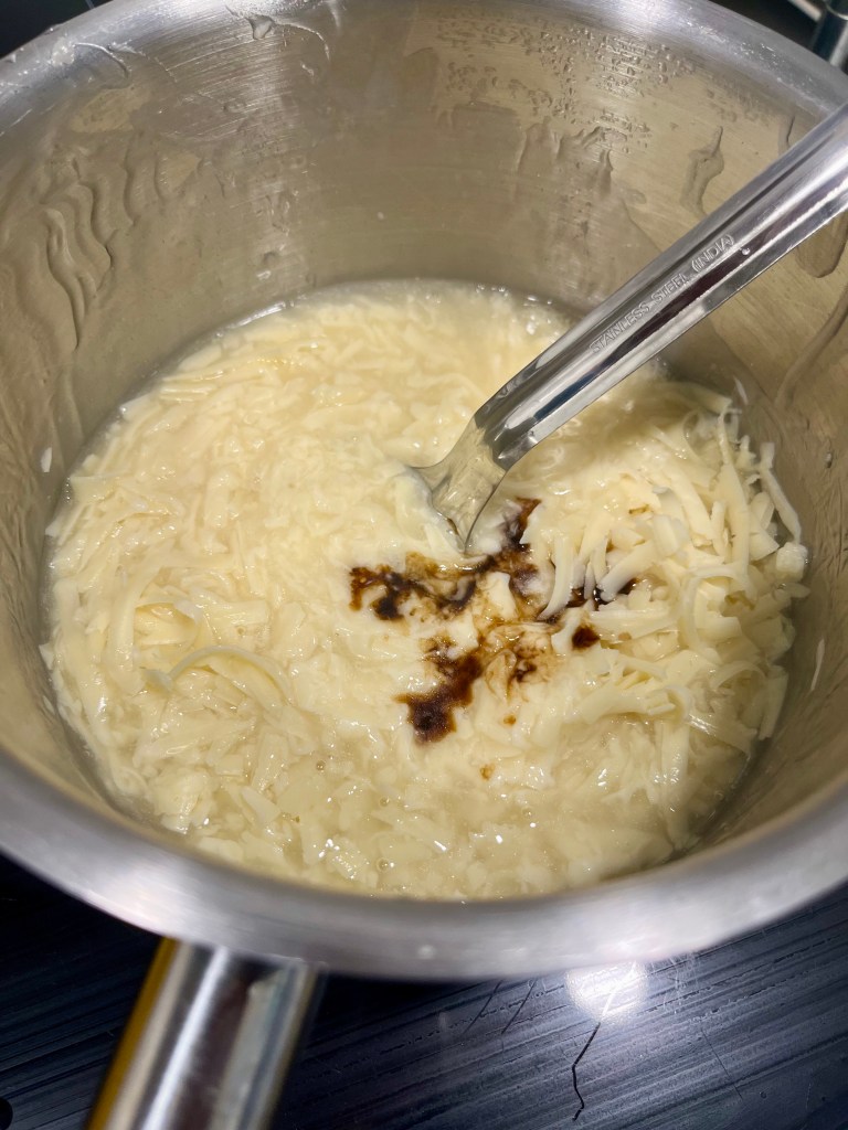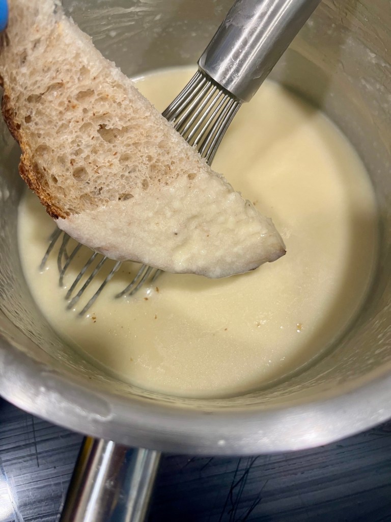 - 3/4 cup pasteurized liquid eggs or aquafaba (the liquid from cooking chic peas) OR 3 fresh beaten eggs (if you care to eat them raw).