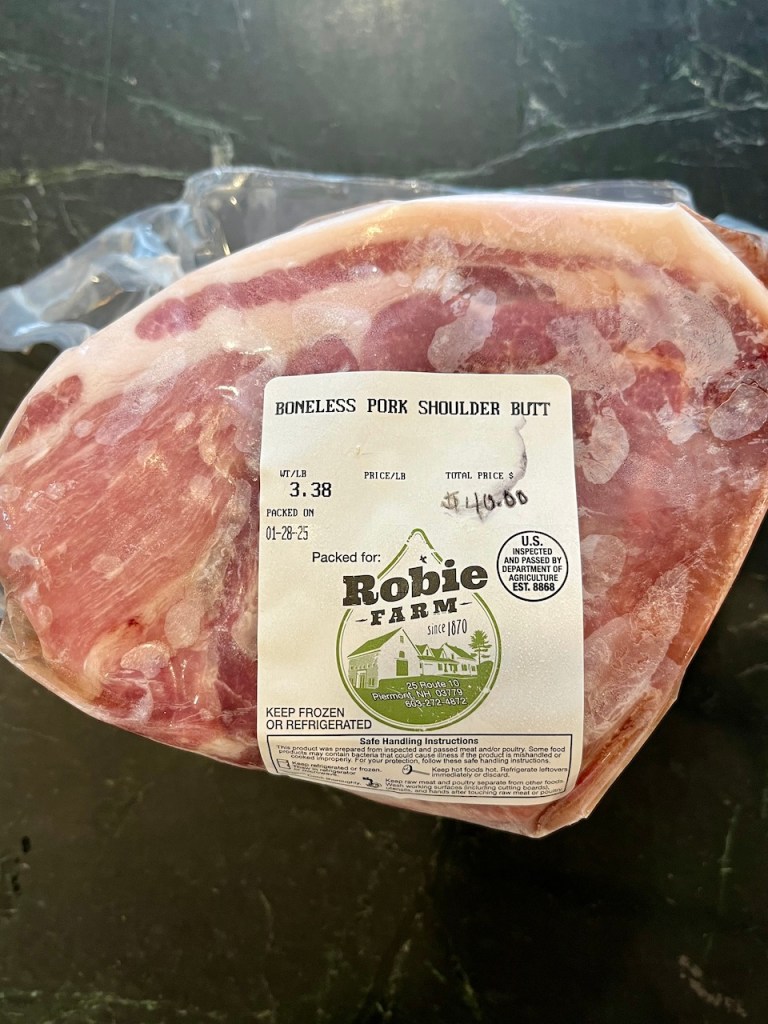 We’ve expanded our range of Robie Farm’s meats to include pork chops and beautiful pork roasts. They are working with a new poultry processor in Maine [because NH doesn’t have one] so that we might be able to offer their pasture raised chickens soon, fingers crossed.