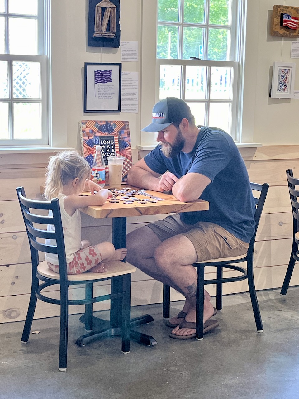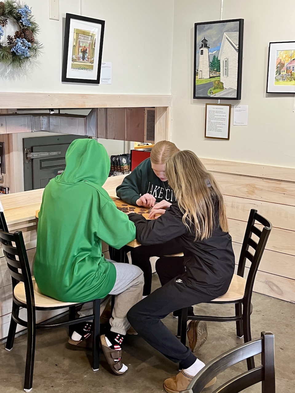…we planned them specifically. No florescent over-heads because they do not allow natural shadowing and brightening like daylight does. And they have a microscopic flicker that over-stimulates oneself [in fact, epileptic folks have to be careful] so it negates any reason to linger and be cozy.