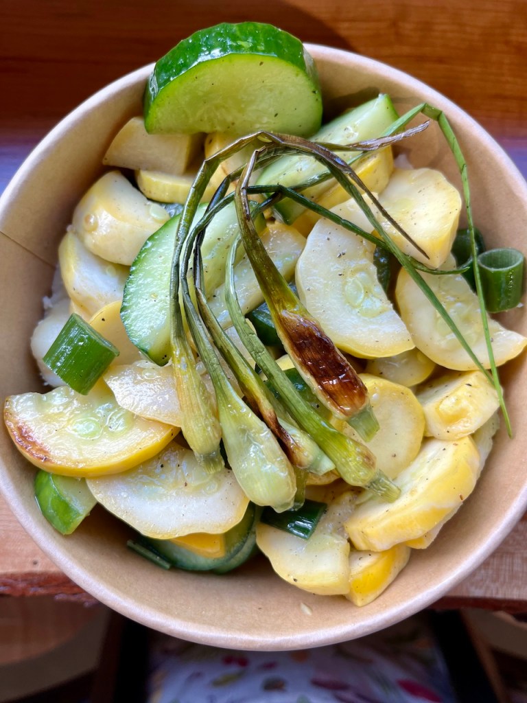 …about how our store and our kitchen has a no-waste policy. We reuse and recycle everything we can and save all our food scraps to send to our neighbors and farmers to enrich the diets of the chickens whose eggs we sell and to compost the gardens of those whose produce we are lucky enough to eat. And when you decide you don’t really care for something we have on our shelves, it goes next door to the church pantry to be distributed to those in our community who may be hungry or simply in need of some neighborly comfort through a gift of food. Any left-over fresh prepared food goes to the shelterless or our homes for supper. No waste. Not wanting. Full circle.